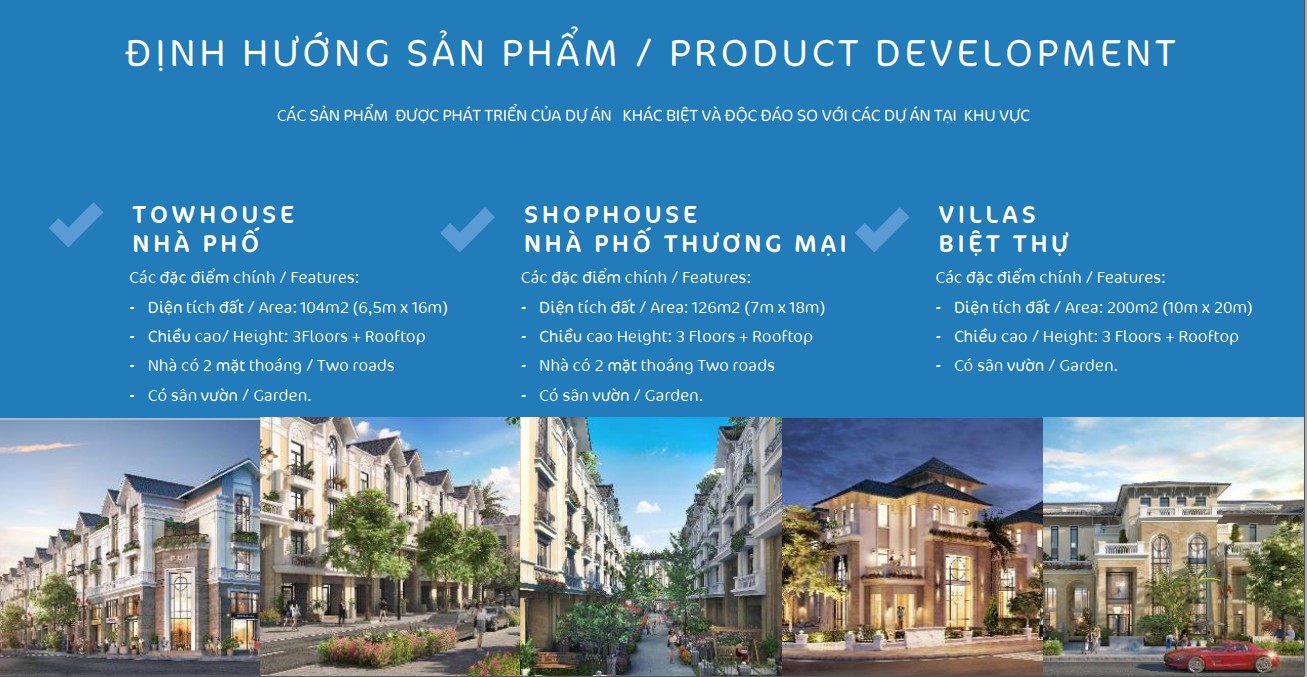 | Loại hình sản phẩm | Shophouse/Liền kề/Biệt thự/Khách sạn/NOXH/Căn hộ |