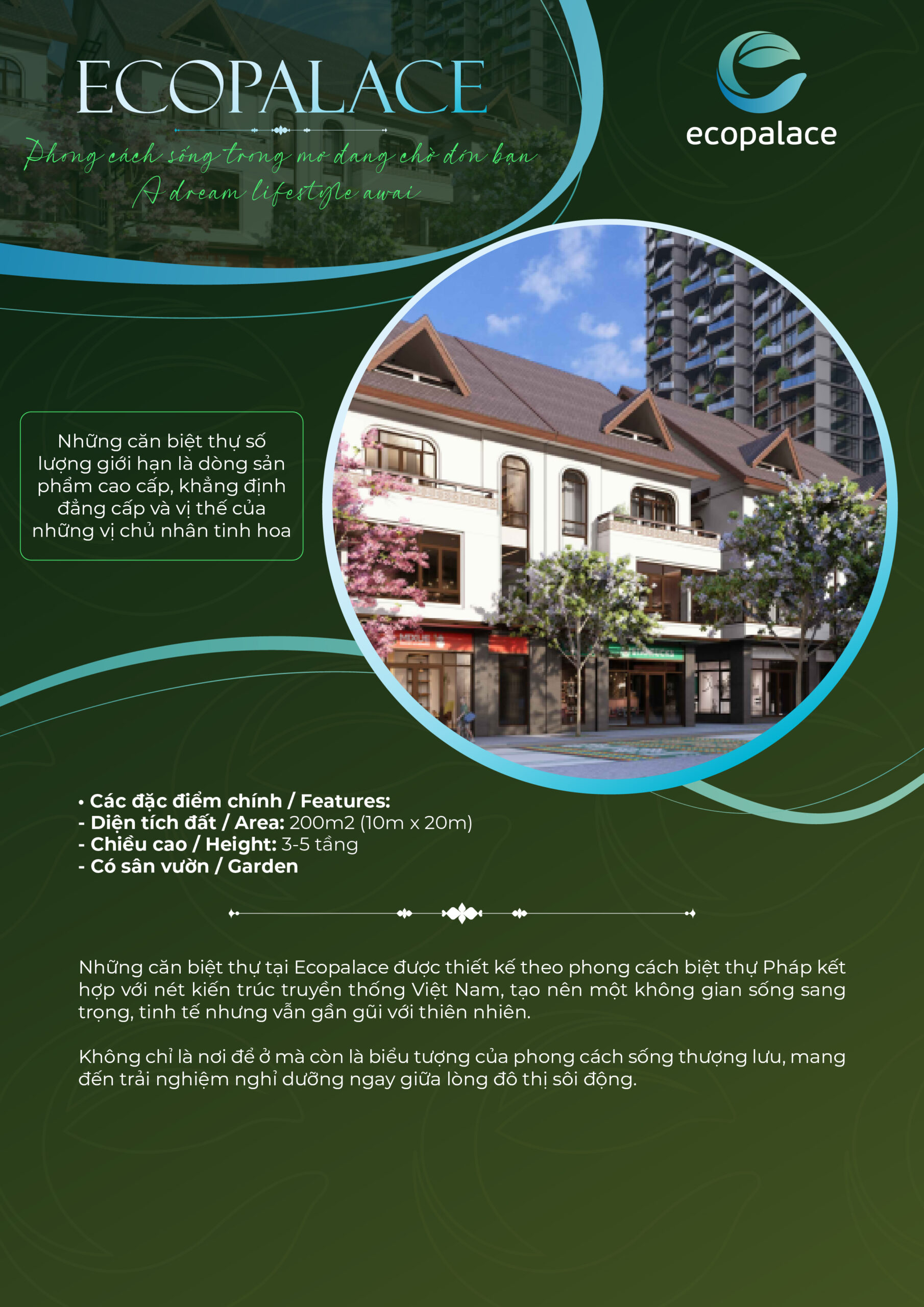 Dự án EcoPalace Buôn Ma Thuột – Đô Thị Tri Thức . Dự án EcoPalace Buôn Ma Thuột. được phát triển theo Mô hình Khu nhà ở sinh thái mang phong cách indochine. Trong đó cư dân EcoPalace Buôn Ma Thuột ngoài các dịch vụ tiện ích cao cấp của khu đô thị sẽ được hưởng thêm các dịch vụ cao cấp tại nhà giống như đi nghỉ tại các khu nghỉ dưỡng resort.