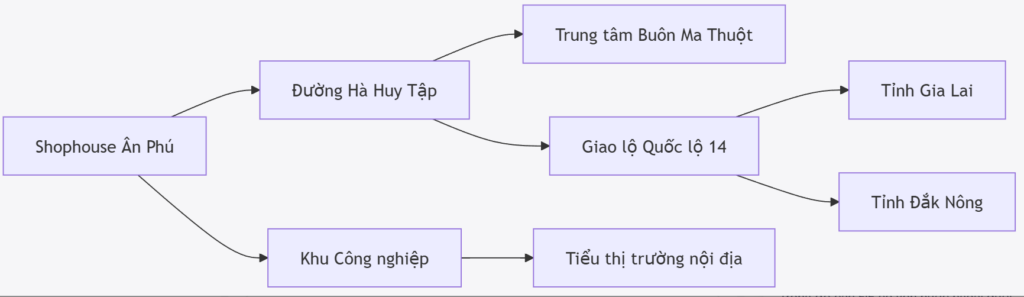 Shophouse tại dự án Khu Đô Thị Ân Phú được tọa lạc tại mặt tiền đường Hà Huy Tập – một trong những tuyến đường chính của Buôn Ma Thuột, tạo điều kiện thuận lợi cho giao thông và kết nối với các khu vực trọng yếu trong thành phố cũng như các tỉnh lân cận. Vị trí này giúp: